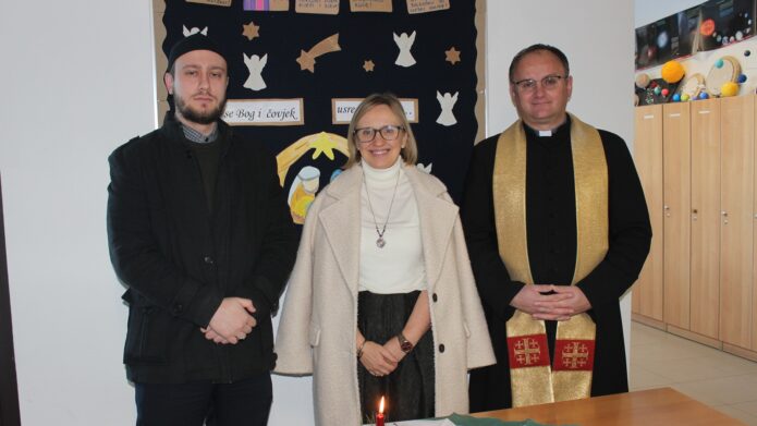 Efendija Joldić pozdravio je riječi župnika Živića te u nagovoru istaknuo da uvijek na početku sata islamskog vjeronauka podsjeća učenike kako se svakog dana prvo treba sjetiti Milosrdnog Gospodara. ”Slabi smo ljudi i bez Božje pomoći ne možemo ništa učiniti. Da bismo mogli uspjeti u bilo kojem poslu koji budemo radili, svaki dan iznova trebamo tražiti Božju pomoć u molitvi”, poručio je Joldić.